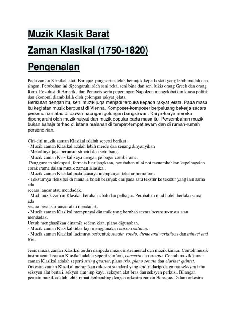 Beberapa komponis zaman klasik:franz joseph haydnwolfgang amadeus mozartcarl philipp emanuel bach (anak. Komposer dan pianis jerman adalah tokoh paling menonjol dalam masa transisi antara periode klasik dan romantis, dan salah satu komposer musik klasik paling terkenal. Musik klasik adalah musik yang diproduksi dalam seni, atau berakar dalam, tradisi musik liturgi barat dan sekuler, yang mencakup periode yang luas mozart adalah salah satu tokoh yang sangat penting serta membawa pengaruh yang sangat besar terhadap zaman musik klasik maupun zaman musik. Sonata adalah karya musik untuk permainan solo, sedangkan simfoni adalah untuk orkestra. Musik klasik pada dasarnya bukan hanya sebatas nama dari salah satu aliran/jenis musik.
