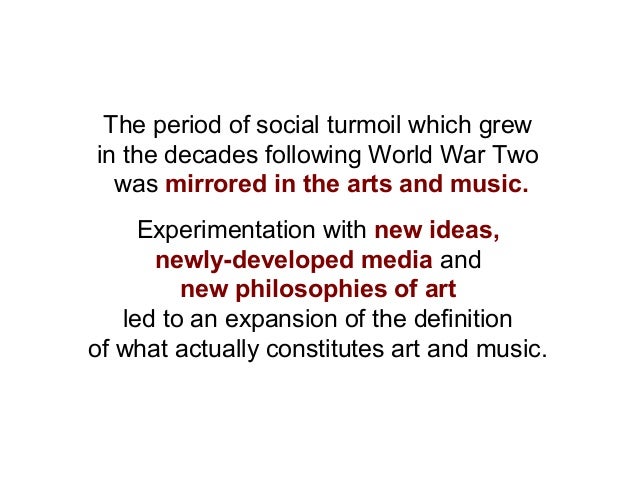 The term modernism designates a movement in art, literature and music, beginning in the 19thc and lasting into the 20thc, ending approximately with ww ii modernism music. Art which is modernist may possess the following 12 characteristics:
